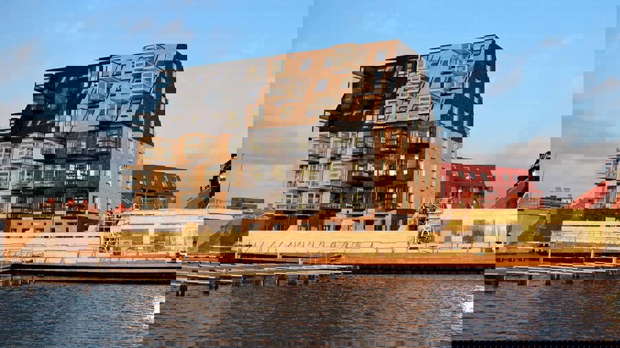 Kilströmskaj in Karlskrona, southern Sweden, is a development of three apartment buildings with a total of just over 40 apartments. Due to their special construction, the buildings meet standards for passive buildings. Due to the special architectural design, many of the buildings’ walls also serve as ceilings. This places demands on the buildings’ climate shells and therefore cedar shavings dyed in red, black and grey are used, making the facades durable and maintenance-free.