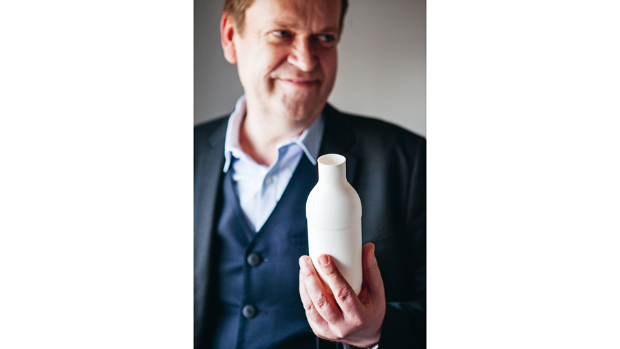 We are at ecoXpac in a small industrial area outside the Danish town of Slangerup, about half an hour drive from Copenhagen. This is where the so-called Paper Bottle, which has been the center of serious hype in the packaging industry in recent years, is made. The bottle is cast in 3D with fiber from new wood and by the time it reaches consumers, it will be the first of its kind that can withstand carbonated drinks. The fact that the Paper Bottle – unlike the aluminum cans, plastic, and glass bottles dominating the market today – is biodegradable and has lower climate impact in manufacturing, has made expectations high.